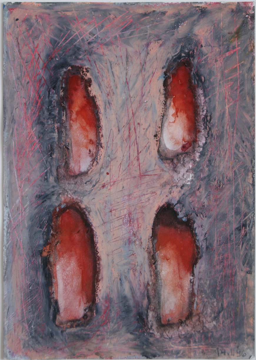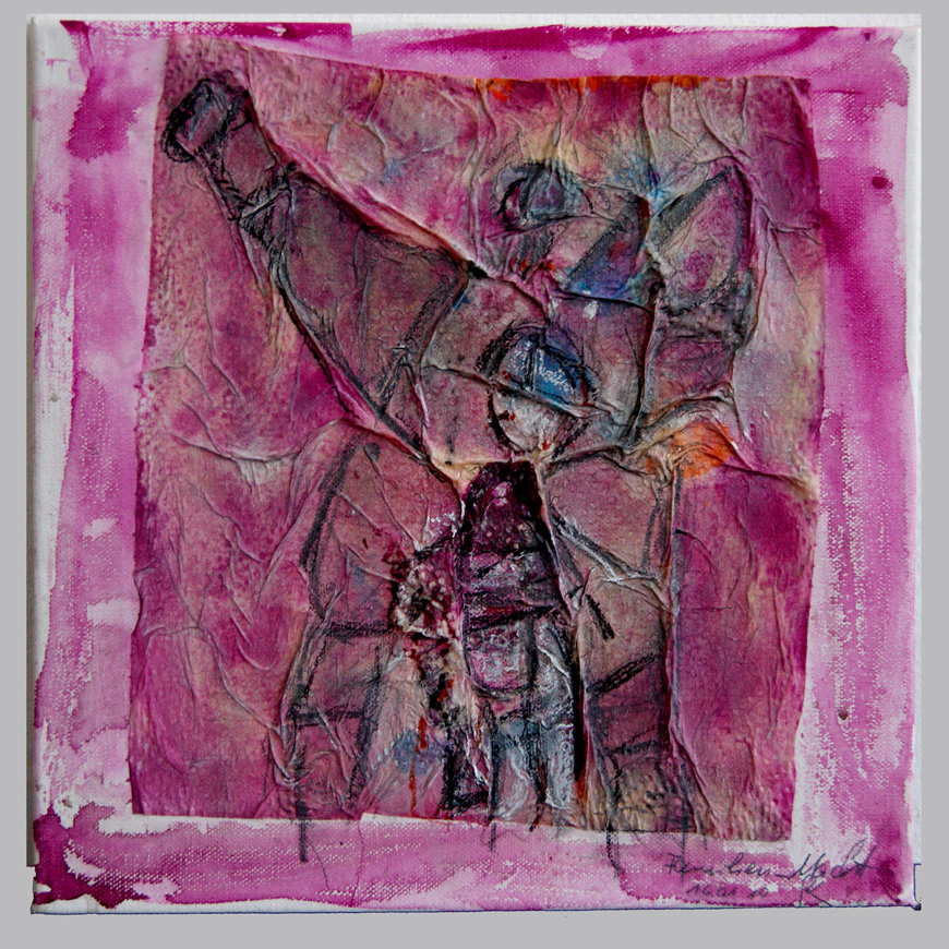 Etwas in Bildform zu bringen, was eigentlich nicht erfassbar ist, gelingt am Besten durch Annäherung an die Sprache des Bildes selbst. Dabei geht es mir nicht um planbare Kunstkörper, sondern um intuitives Erfassen dessen, was die Spuren auf dem Bild vorgeben.